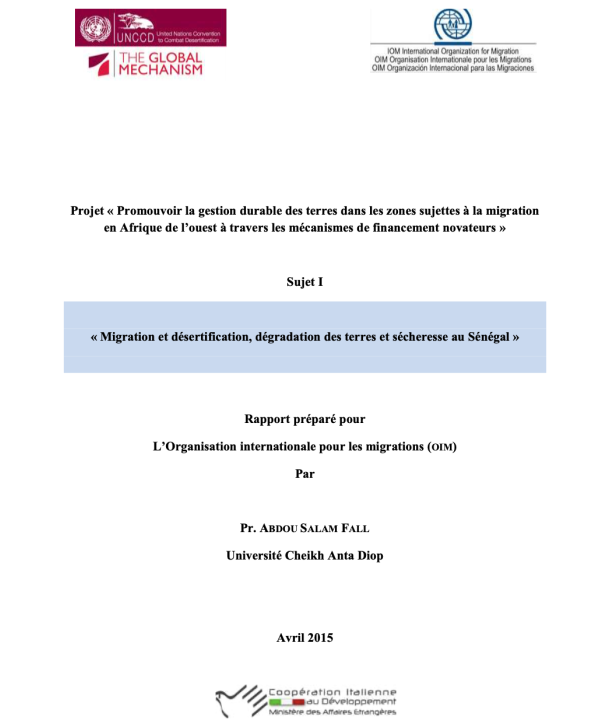 Cette recherche se fixe comme objectif principal d’analyser les relations entre la migration et la désertification, la dégradation des terres et sécheresse au Sénégal (DDTS) et de montrer les tendances, les risques, les opportunités et les conséquences de ce phénomène. L’analyse repose sur l’idée que les phénomènes environnementaux peuvent intervenir comme déclencheurs et facteurs d’accentuation de certaines migrations. Dans le cas des catastrophes naturelles (ravalement de villages ou de cités par la mer, engloutissement de zones d’habitat, de culture ou de pâturage, inondations ou de sinistres fortes, etc.) des migrations massives et brusques s’en suivent entraînant le déplacement de villages entiers ou de cités nombreuses. En outre, certains phénomènes naturels (dégradation des terres causée par des érosions hydriques ou éoliennes, salinisation ou acidification des sols) sont à l’origine de processus plus ou moins lents d’exposition aux risques de départ qui souvent s’ajoutent à d’autres facteurs de répulsion (pauvreté, perte de récolte, perte de bétail, amenuisement des ressources foncières, etc.).